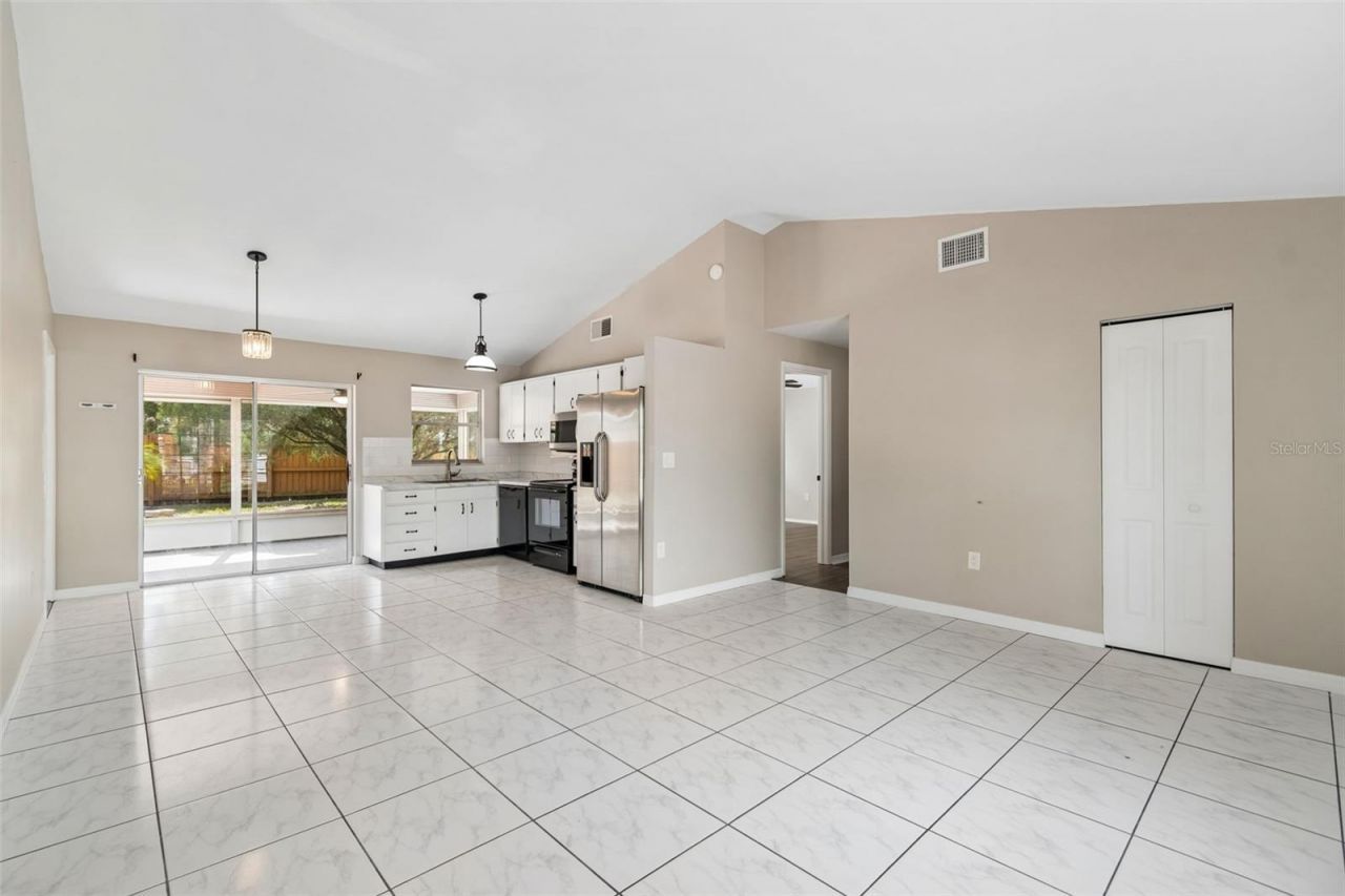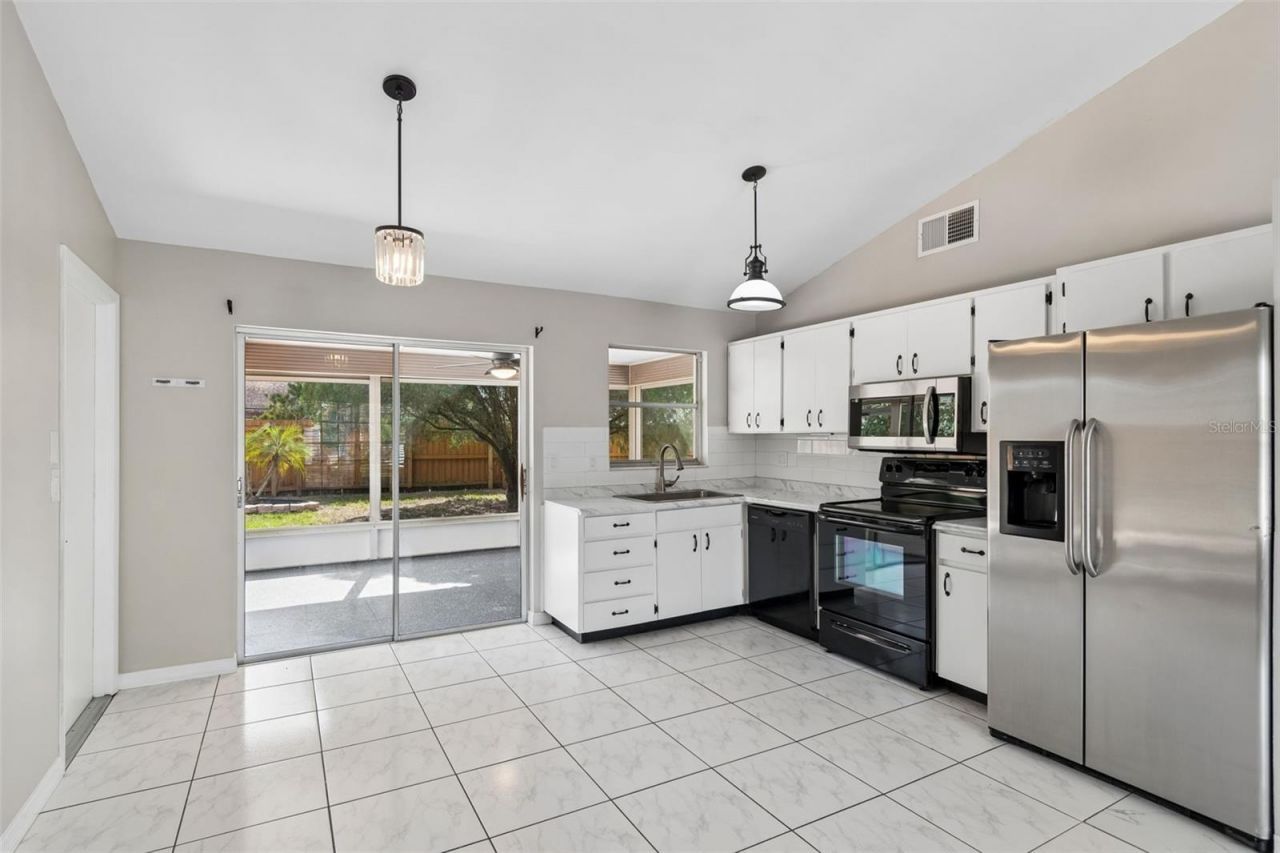 PRICE REDUCED! Step into this charming and thoughtfully updated 2-bedroom, 2-bathroom home with a 1-car garage-where comfort meets effortless style in every corner. From the moment you arrive, the inviting curb appeal and mature landscaping set a warm, welcoming tone. Inside, you'll find a bright, open living space with soaring ceilings and abundant natural light that gives the home an airy, relaxed feel. The kitchen is both stylish and functional, featuring sleek countertops, modern appliances, and crisp cabinetry-perfect for everything from quick breakfasts to cozy dinner nights. Just beyond, sliding glass doors lead to a spacious screened-in lanai, creating a seamless indoor-outdoor flow ideal for morning coffee, evening unwinding, or hosting friends with a breeze drifting through. Both bedrooms are generously sized with beautiful flooring and ample closet space, offering peaceful retreats at the end of the day. The primary suite includes a beautifully updated en-suite bathroom with a walk-in glass shower and elegant finishes, while the second bathroom features a clean, modern design perfect for guests or family. Additional highlights include updated flooring throughout for a cohesive, modern look, fresh, neutral tones ready for your personal touch, dedicated laundry area in the garage with extra storage space, and a spacious backyard with room to relax, garden, or play. Whether you're a first-time buyer, downsizing, or looking for a turnkey investment, this home checks all the boxes with its blend of charm, functionality, and updated features.